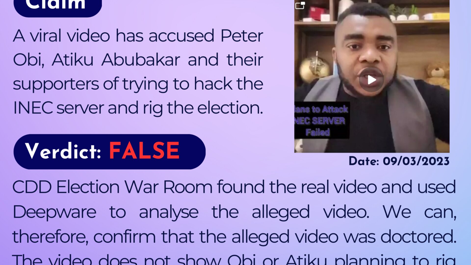 A Viral video has accused Peter Obi, Atiku Abubakar and their supporters of trying to hack the INEC server and rig the election.