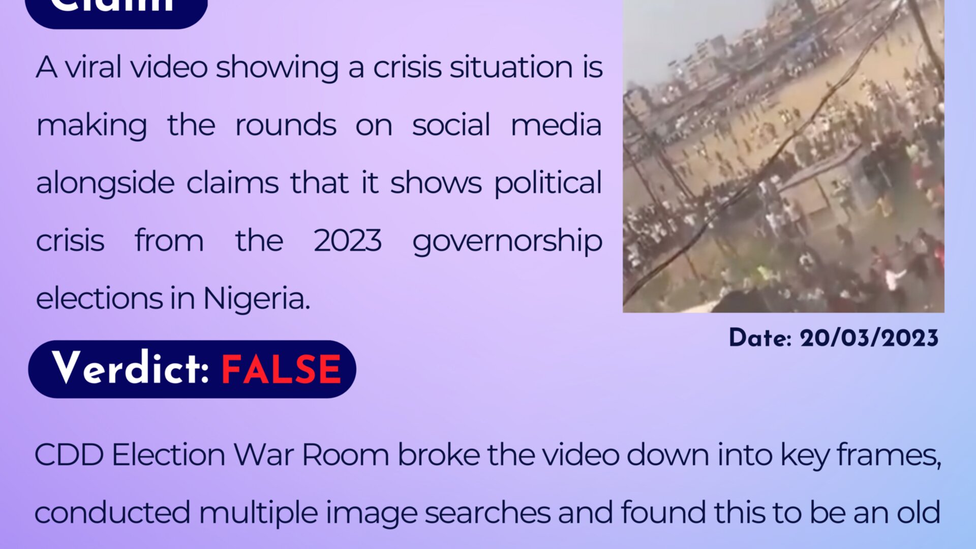 A viral video showing a crisis situation is making the rounds on social media alongside claims that it shows political crisis from the 2023 governorship elections in Nigeria.