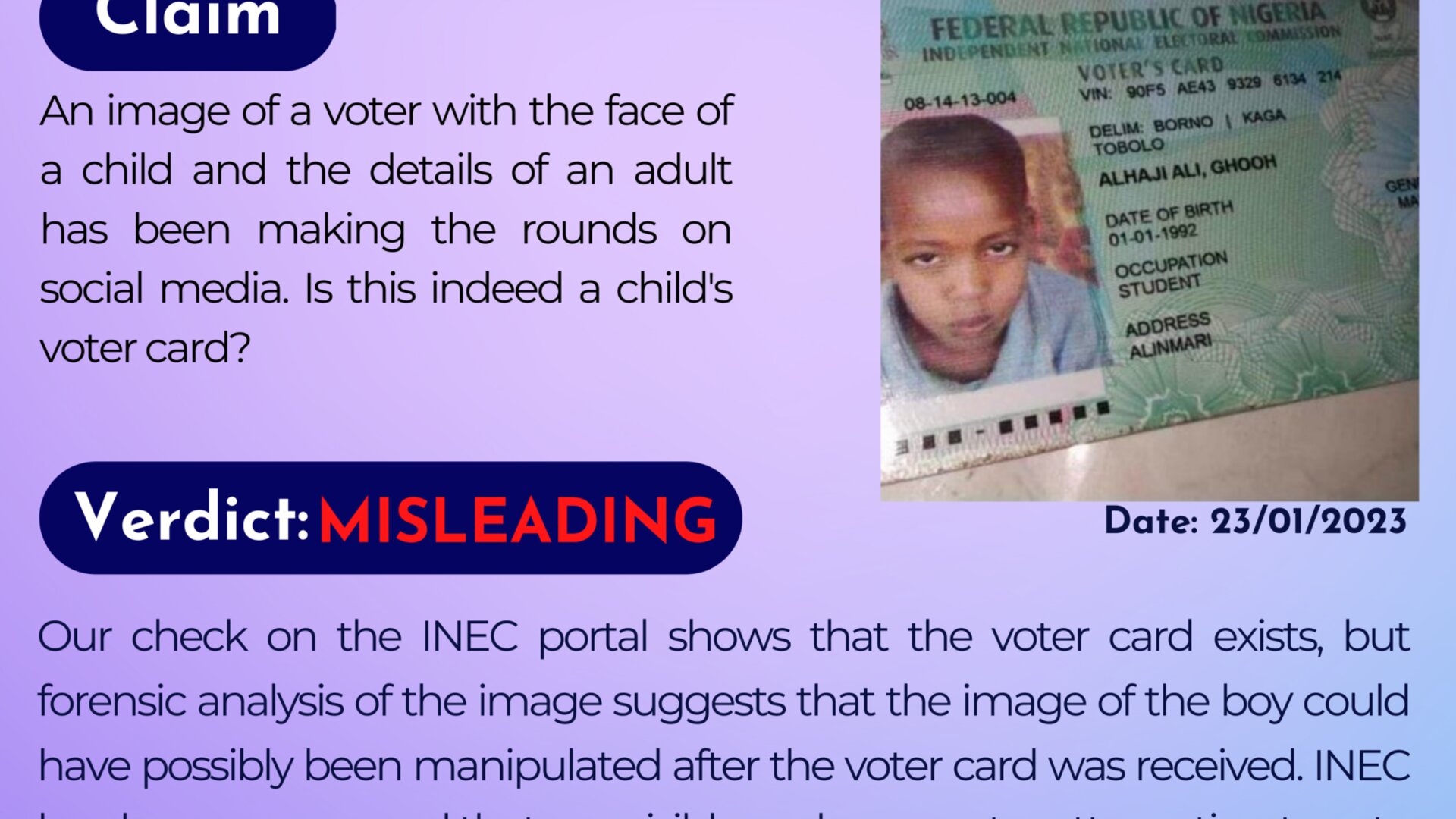 An image of a voter with the face of a child and the details of an adult has been making the rounds on social media. is this indeed a child's voter card?