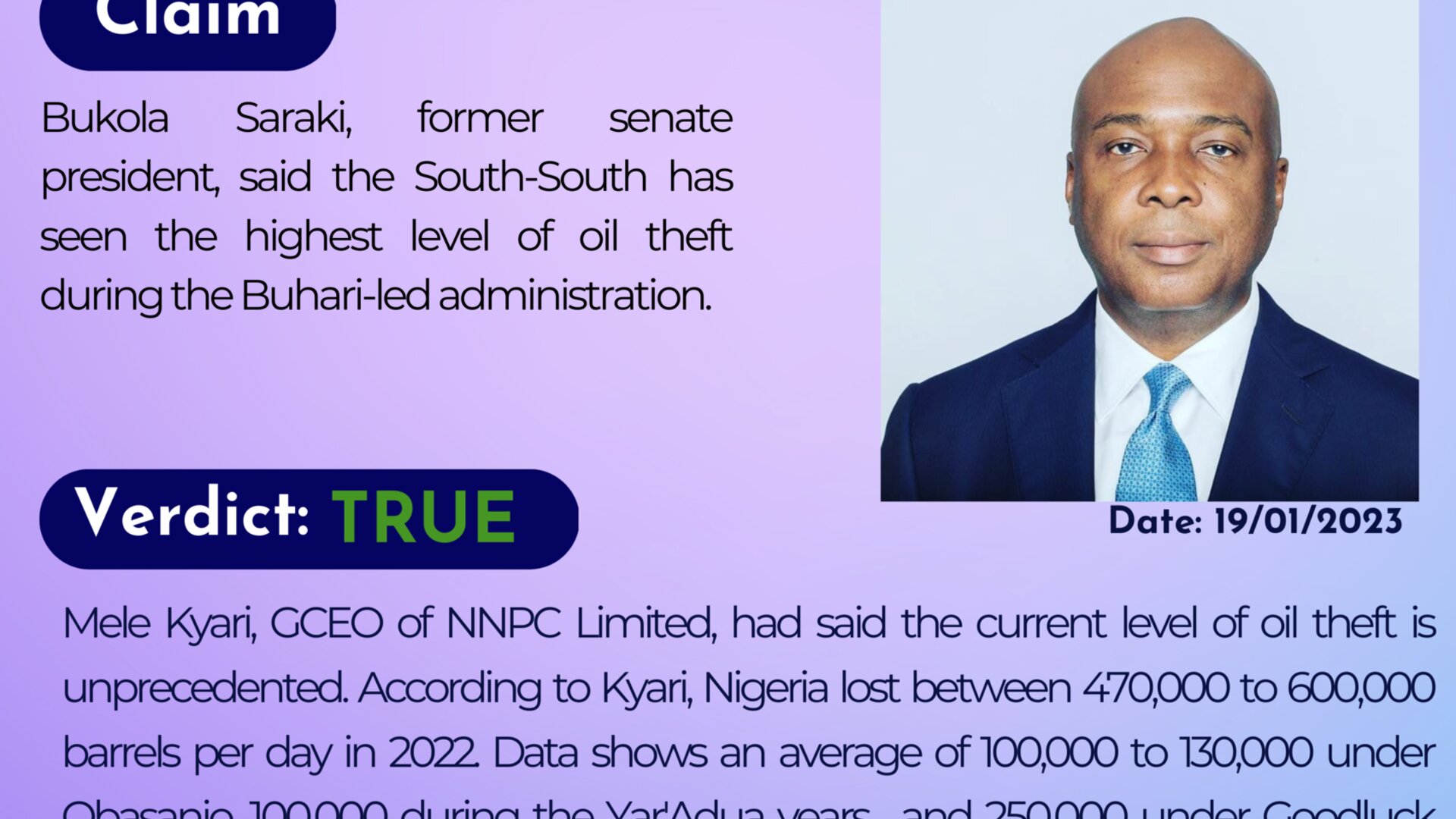 Bukola Saraki former senate president, said the South-South has seen the highest level of oil theft during the Buhari-led administration.