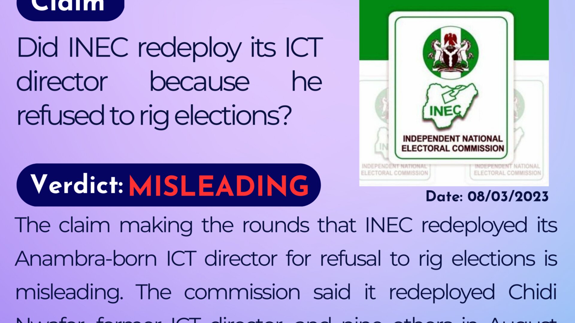 Did INEC redeploy its ICT director because he refused to rig elections?