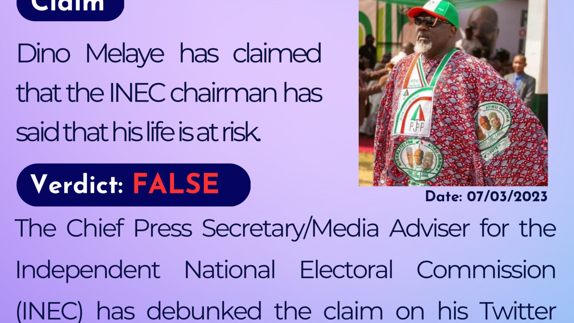 Dino Melaye has claimed that INEC chairman has said that his life is at risk.