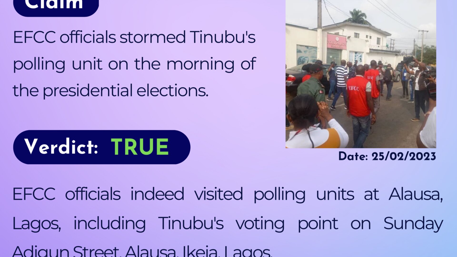 EFCC officials stormed Tinubu's polling unit on the morning of the presidential elections.