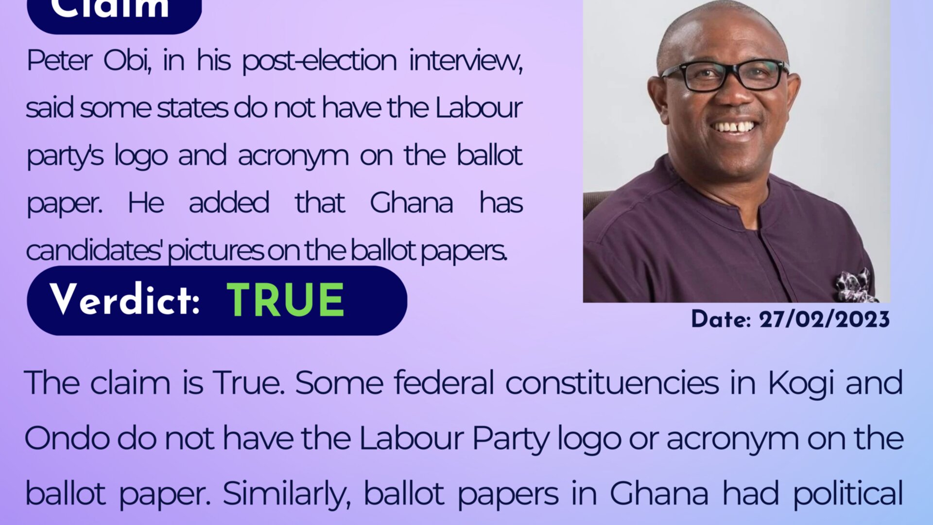 Peter Obi, in his post-election interview said some states do not have the Labour party's logo and acronym on the ballot paper. he added that Ghana has candidates' pictures on the ballot papers.