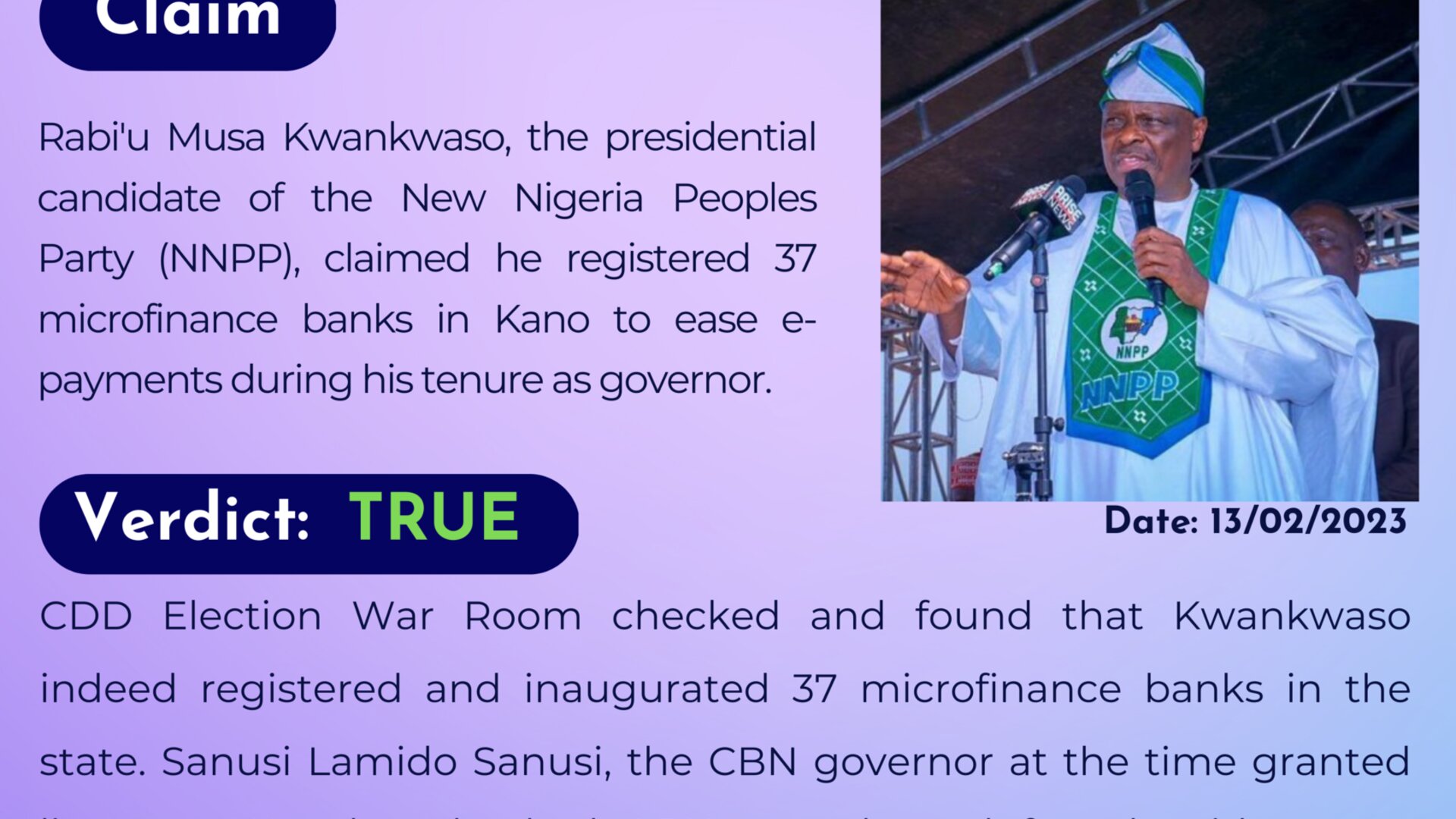 Rabi'u Musa Kwankwaso, the Presidential candidate of the New Nigeria Peoples Party (NNPP), claimed he registered 37 microfinance banks in Kano to ease e-payments during his tenure as governor.