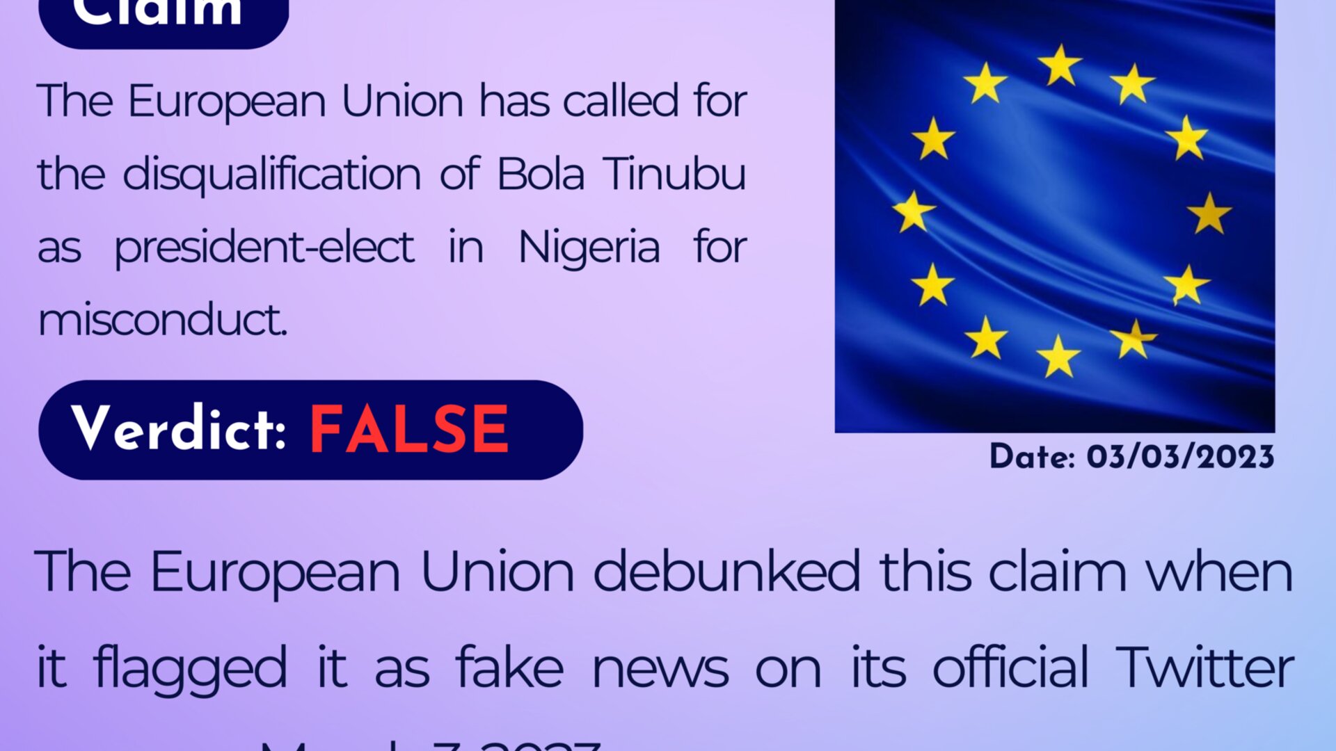 The European Union has called for the disqualification of Bola Tinubu as president-elect in Nigeria for misconduct.
