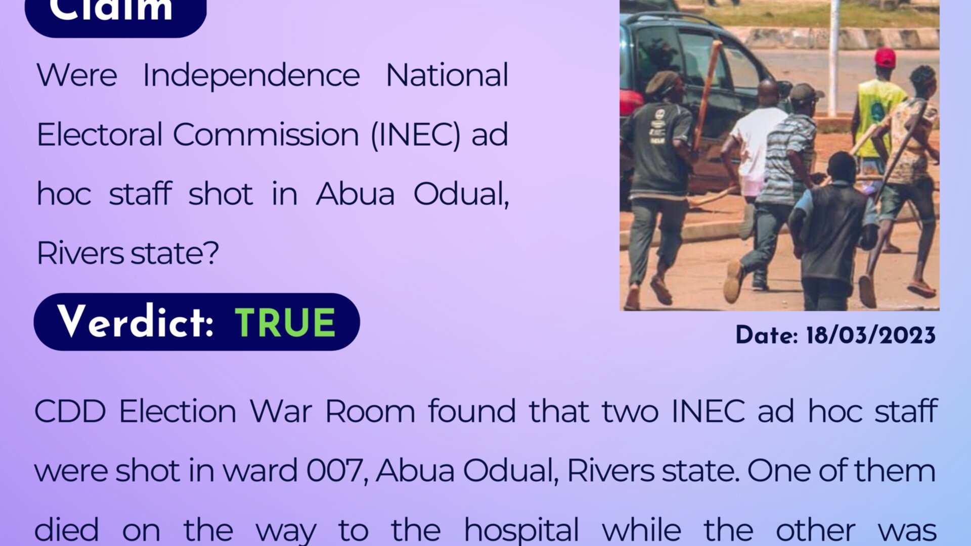 Were Independence National Electoral Commission (INEC) ad hoc staff shot in Abua Odual, Rivers state.