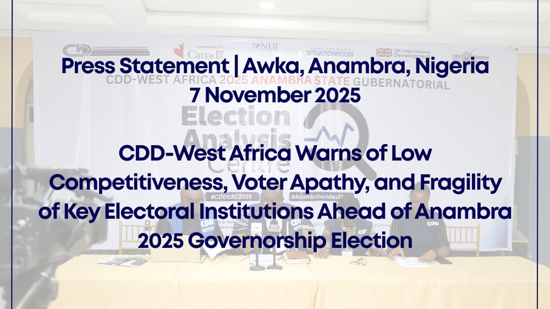 CDD-West Africa Warns of Low Competitiveness, Voter Apathy, and Fragility of Key Electoral Institutions Ahead of Anambra 2025 Governorship Election